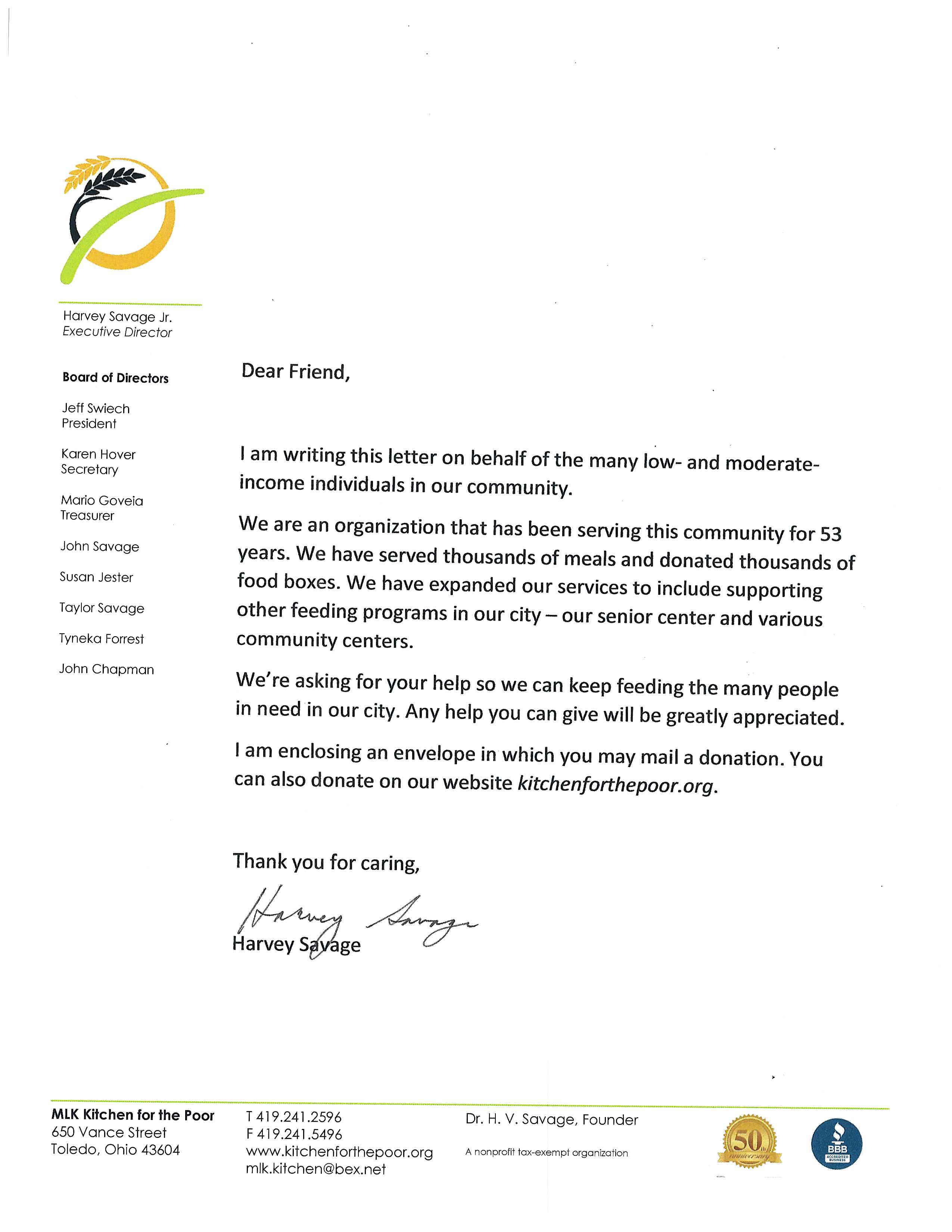 News Our spring appeal May 17, 2022 Please take a moment to read our spring appeal letter from executive director, Harvey Savage. Thank you for all you do to help us continue to feed the hungry in central Toledo.