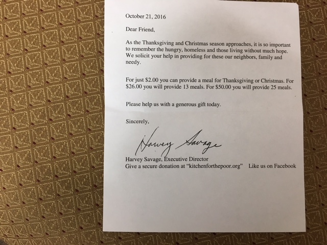 Please read Harvey’s letter and send in your gift today. For just $2, you can provide a meal for Thanksgiving or Christmas. For just $26, you can provide 13 meals, and for $50, you can provide 25 meals.